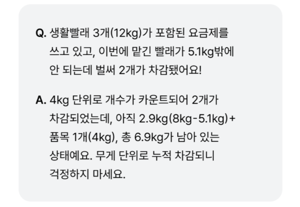 24.09.30 요금제 개편과 더불어, 24.10.08 생활빨래 운영 정책의 변경이 이루어짐에 따라 기존의 이용 경험과의 차이가 있는 것으로 보여져요.
